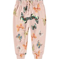 Lyseblå sweatpants i økologisk bomuld til de mindste. Bukserne har elastik og bindebånd i taljen samt ribkanter ved benene. De er nemme at få af og på og giver masser af bevægelsesfrihed. Bukserne har et fint placement print af små, fine hvide blomster.