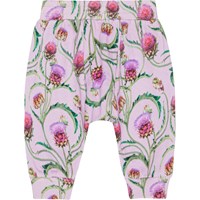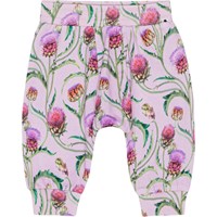 Lilla jersey bukser til de mindste i en blød økologisk bomuld. Bukserne har en løs pasform, ribkanter i ben samt i taljen det gør dem nemme at få af og på. Bukserne har et alloverprint af smukke artiskokblomster i lilla, røde og grønne farver. Kombiner bukserne med matchende sweater og få et komplet jerseysæt.