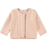 Denne lyserøde quiltede jakke er lavet af den blødeste bomuld og er perfekt til de mindste. Jakken har lange ærmer og lukkes med perlemorsknapper ned langs fronten.