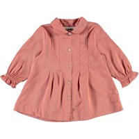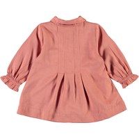 Calesta er en rosa skjorte kjole til babyer. Kjolen har krave og pliseringer på fronten.