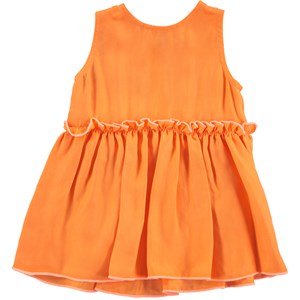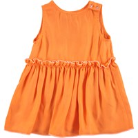 Yndig kjole i cupro uden ærmer og med fine rynkedetaljer i taljen, der skaber et draperende skørt. Åbnes og lukkes med knapper ved den ene skulder.