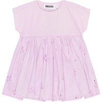 Lilla økologisk kjole til de mindste. Kjolen har en rundhalsudskæring, lukning med trykknapper og et skørt i broderie anglaise.
