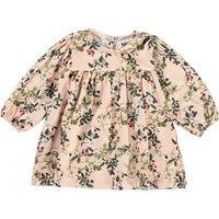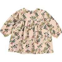 Coral er en rosa babykjole med print af brombærranker. Kjolen har en flot volumen og kanppelukning i ryggen.