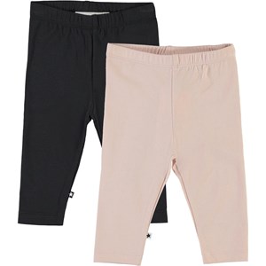 Klassiske baby leggings her i en 2-pack med et sort og et rosa par. Den elastiske talje og det bløde materiale sikrer en god pasform. Certificeret af Ecocert Greenlife, certifikationsnr. 197496.