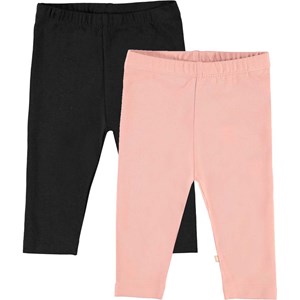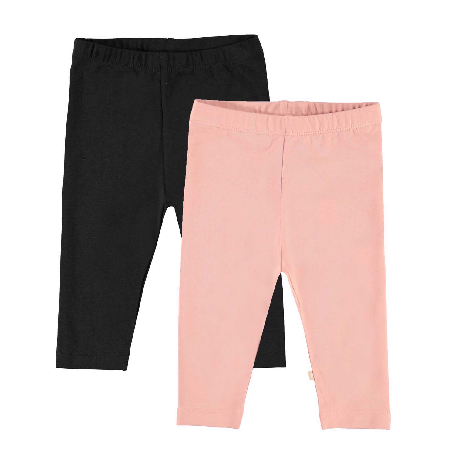 Klassiske baby leggings her i en 2-pack med et rosa og et sort par. Den elastiske talje og det bløde materiale sikrer en god pasform. Certificeret af Ecocert Greenlife, certifikationsnummer 197496.