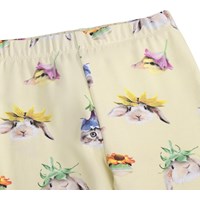Gule leggings med dyreprint i økologisk bomuld til de mindste. Har elastisk talje og en blød, behagelig pasform.
