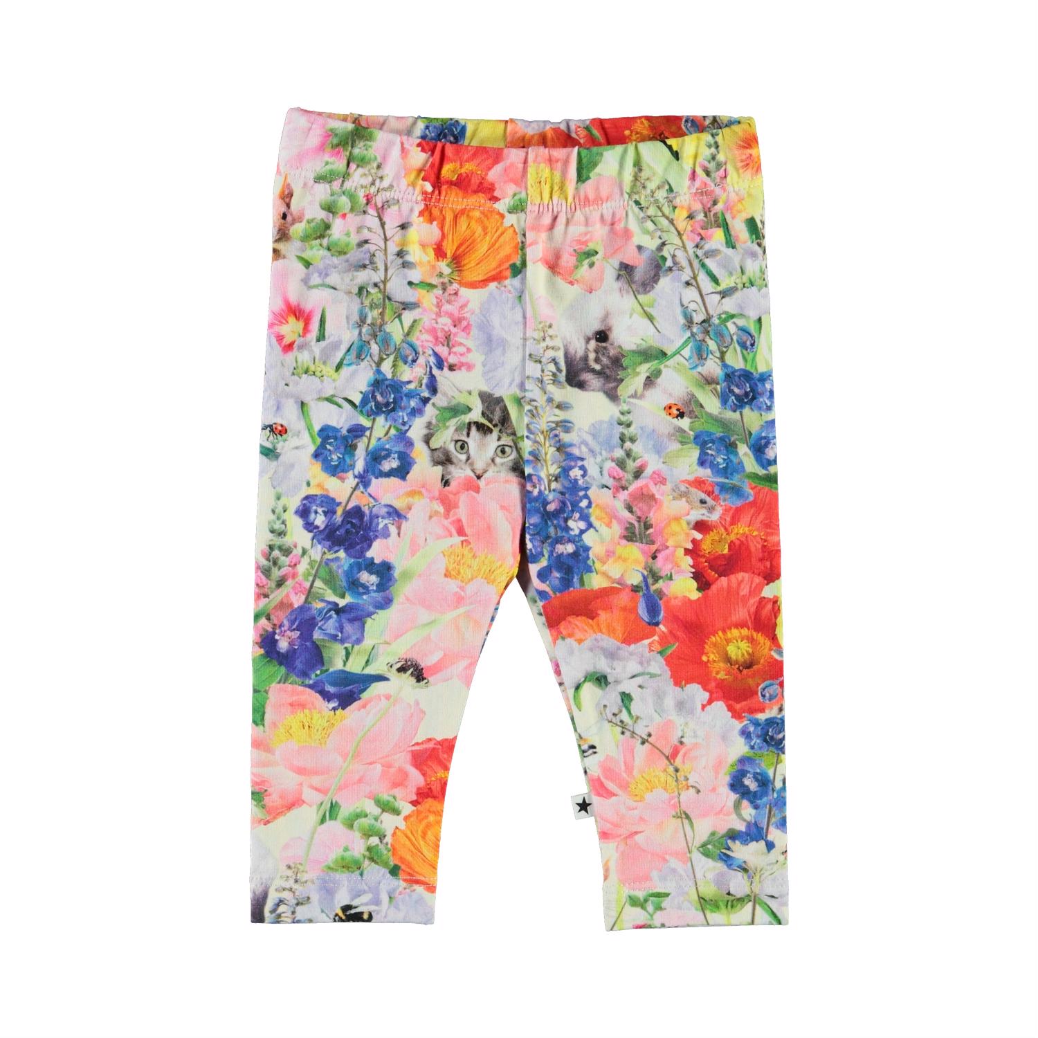 Stefanie er et par baby leggings med blomster print. Den elastiske talje og det bløde materiale sikrer en god pasform. Certificeret af Ecocert Greenlife, certifikationsnr. 197496.