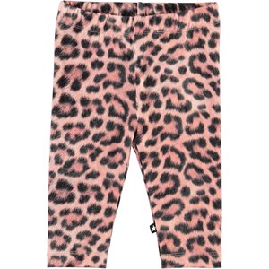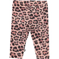Klassiske baby leggings med rosa leopardprint. Den elastiske talje og det bløde materiale sikrer en god pasform. Certificeret af Ecocert Greenlife, certifikationsnummer 197496.