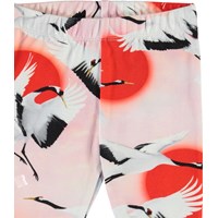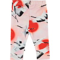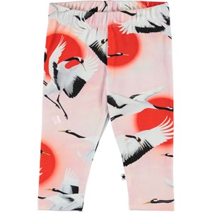 Stefanie er et par baby leggings i lyserød med print af flyvende traner. Den elastiske talje og det bløde materiale sikrer en god pasform.
