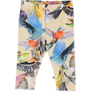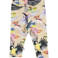 Klassiske baby leggings i lysegul med print af forskellige fugle. Den elastiske talje og det bløde materiale sikrer en god pasform.