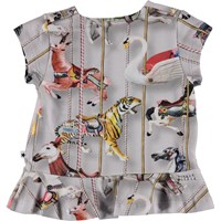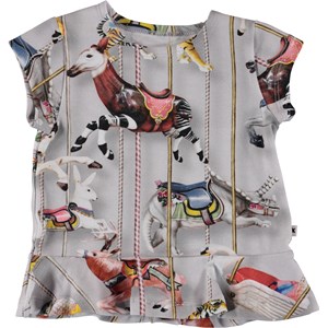 Ebba er en baby t-shirt i Molos "Carousel" print. Ebba har helt korte ærmer og et lille peplum skørt.