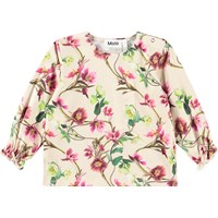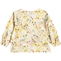 En lys langærmet bluse til de mindste, lavet af blødt økologisk bomuld. Blusen har en løs pasform og elastiske ærmer med en flæsekant. Der er også en knaplukning ved skulderen, som gør det nemt at tage blusen af og på. Blusen har et sødt print af akvarel malet katte i grå, gule og lyse nuancer.