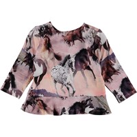 Elisabeth er en baby bluse i Molos "Wild Horses" print, som bringer fine farver til blusen. Elisabeth har lange ærmer og peplum skørt.