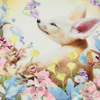 Elly er en lysegul baby t-shirt med print af en baby ræv og en masse flotte blomster.