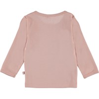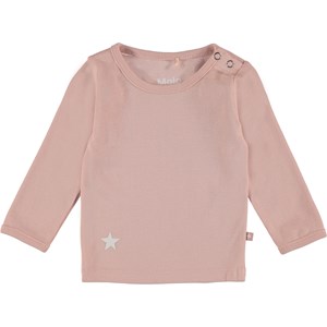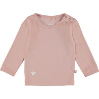 Rosa basis bluse til baby med en lille påtrykt stjerne forneden. Trykknapper ved halsen gør det let at få blusen af og på.