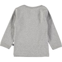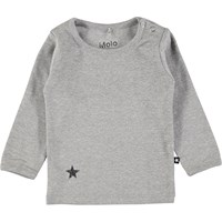 Grå basis bluse til baby med en lille påtrykt stjerne forneden. Trykknapper ved halsen gør det let at få blusen af og på.