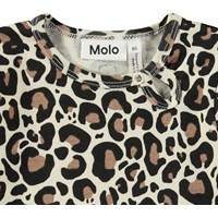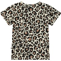 T-shirt til de mindste i økologisk bomuld. T-shirten har en tætsiddende pasform, smal ribkant ved halsen samt knaplukning på venstre skulder, der gør den nem at tage på. T-shirten har et allover jaguarprint.