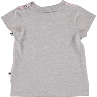 Erin er en grå baby t-shirt med placement print af festklædt chihuahua. Erin er en smule lægere bagpå og har grå ærmer og bagside.