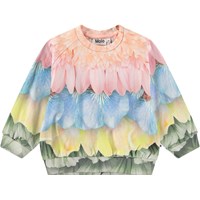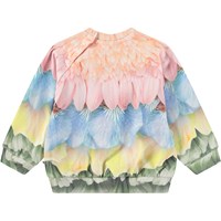 Blød sweatshirt til de mindste i økologisk bomuld. Sweatshirten har raglanærmer, ribkanter og en rund halsudskæring med knaplukning bag skulderen, hvilket gør den nem at få af og på. Denne sweatshirt er multifarvet med print af blade og fjer. Kombinér med de matchende bukser for et komplet outfit.
