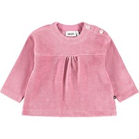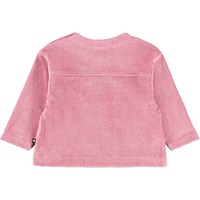 Rosa trøje til de mindste i blød velour. Trøjen har empire snit, og to perlemorsknapper ved skulderen.