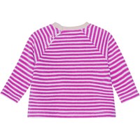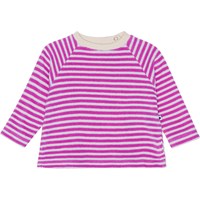 Stribet pink og råhvid langærmet bluse i blødt bomuldsfrotté. Blusen har en bred pasform, ribkant ved halsen samt en knaplukning i nakken, der gør blusen nem at få af og på. Kombiner blusen med matchende short og få et komplet sæt.