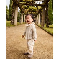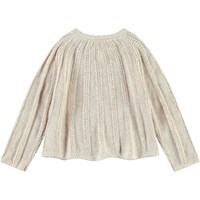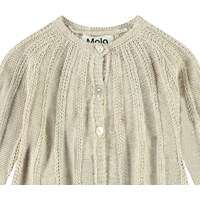 Beige strikcardigan til de mindste. Cardiganen har et fint stribet mønster i løs A-form. Den lukkes foran med små perlemorsknapper.