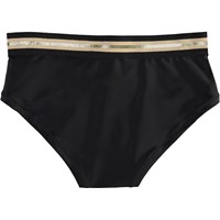 Sorte bikini trusser med stribet kantbånd i guld. Kombiner underdelen med en t-shirt eller svømmebluse for et cool look og mere beskyttelse mod solen. Molo's badetøj har UV beskyttelse 50+. Produktet er CE-mærket og testet i henhold til standard: EN-13758-1.