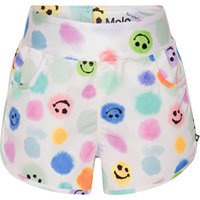 Sporty badeshorts med multifarvet alloverprint fremstillet i 100% genanvendt polyester. Printet består af pastelfarvede prikker, hvoraf nogle af dem er med glade emojis. Disse badeshorts er rundskårne, har lommer i siden, samt en almindelig pasform. Molo's badetøj har UV-beskyttelse 50+. Produktet er CE-mærket og testet i henhold til standard: EN-13758-1.