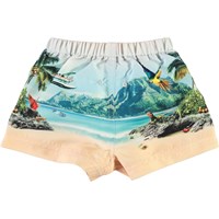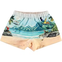 Velkommen til Hawaii, hvor der er strand, lyseblåt hav og en vandflyver som er ved at lande her på badeshotsene Newton. Badeshortsene har en god bevægelighed, samt bredde i benene. Kombiner badeshortsene med en matchende t-shirt. Molo's badetøj har UV beskyttelse 50+. Produktet er CE-mærket og testet i henhold til standard: EN-13758-1.