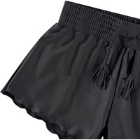 Sorte badeshorts til aktive børn i genanvendt polyester med UV-beskyttelse 50+. Shortsene har en løs pasform, indershorts samt elastik og snørelukning, hvilket gør dem nemme at få af og på. Produktet er CE-mærket og testet i henhold til standard: EN-13758-1.