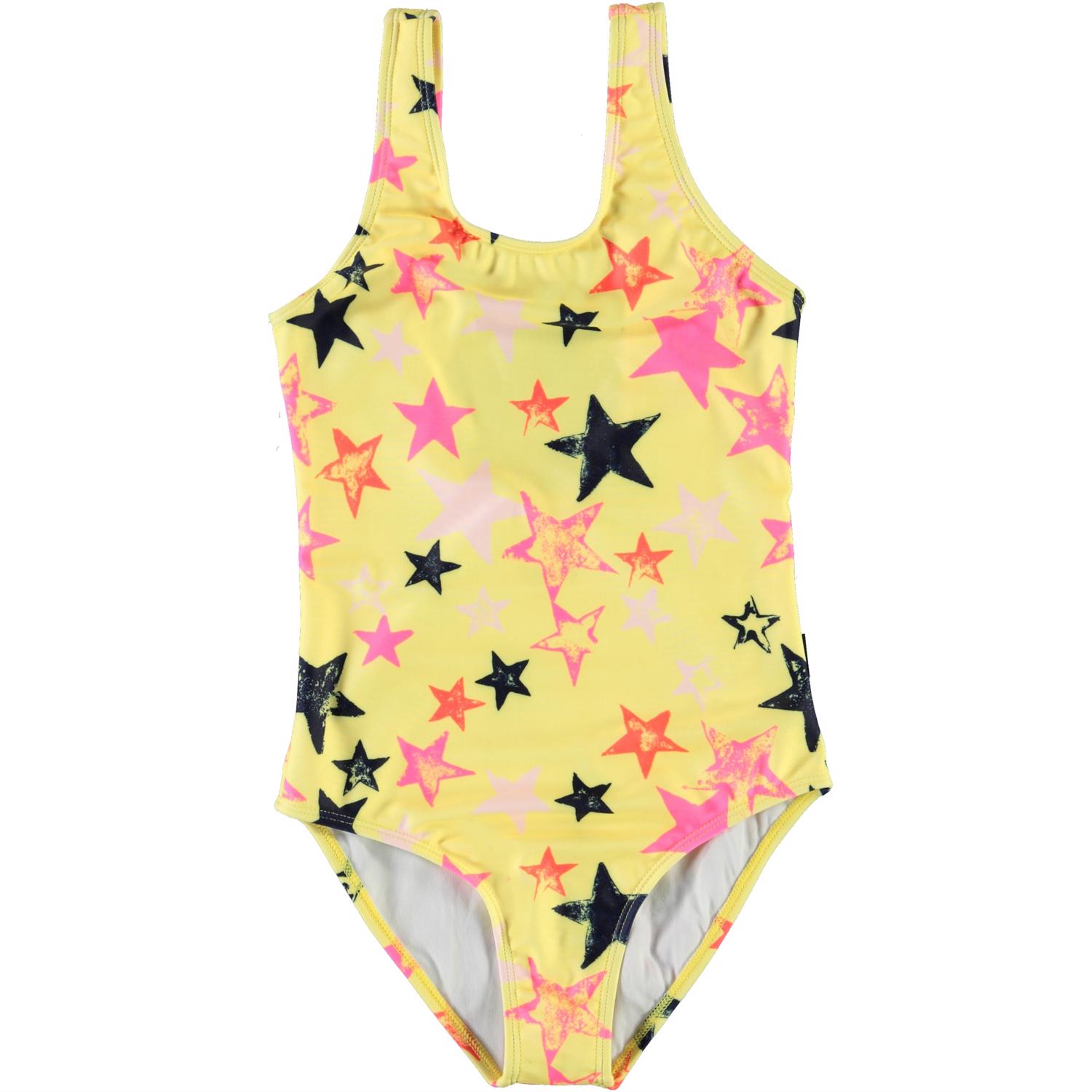Nika er en klassisk badedragt med brede skulderstropper. Nika er her i gul med stjerne print. Molo's badetøj har UV beskyttelse 50+. Produktet er CE-mærket og testet i henhold til standard: EN-13758-1.