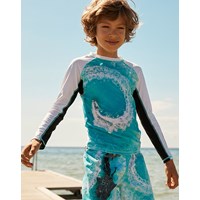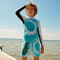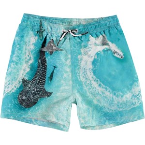 Niko er et par sporty badeshorts i print af en speedbåd, der spinner rundt i vandet og smukke havdyr, der følger efter den. Niko har elastisk talje med bindebånd, som sikrer en god bevægelighed. Kombiner badeshortsene med en matchende t-shirt. Molo's badetøj har UV beskyttelse 50+. Produktet er CE-mærket og testet i henhold til standard: EN-13758-1.