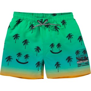 Niko er et par sporty badeshorts i grøn med orange bund og print af palmer. Niko har elastisk talje med bindebånd, som sikrer en god bevægelighed. Kombiner badeshortsene med en matchende t-shirt. Molo's badetøj har UV beskyttelse 50+.
