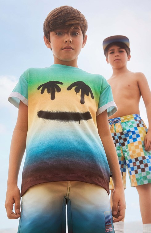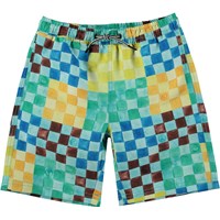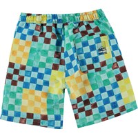 Badeshorts med ternet alloverprint i turkis, blå og gule nuancer. I nogle af ternene gemmer der sig små peace-tegn og yin og yang symboler. Badeshortsene er fremstillet i 100% genanvendt polyester og har lange ben samt elastik og bindebånd i taljen, lommer i siden og en baglome med et sort Molo Swim-label. Badeshortsene har en løs pasform. Molo's badetøj har UV-beskyttelse 50+. Produktet er CE-mærket og testet i henhold til standard: EN-13758-1.
