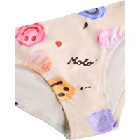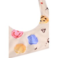 Cremefarvet strækbar bikini med isprint i genanvendt polyester og UV-beskyttelse 50+. Bikinien har en bred overdel, brede stropper, dyb ryg og er helforet. Underdelen har en elastik i taljen, en almindelig pasform og er også helforet.