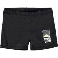 Sorte, tætsiddende badebukser med et Molo Swim logo placeret ved den ene benåbning. Badebukserne har et indvendigt bindebånd, og det elastiske materiale giver god bevægelighed. Molos badetøj har en høj UV-beskyttelse på 50+. Produktet er CE-mærket og testet i henhold til standard: EN-13758-1.