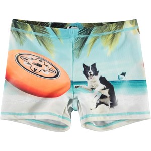 Norton er et par korte badebukser med print af en hund i færd med at gribe en frisbee. Badebukserne har et indvendigt bindebånd og en god bevægelighed. Mix og match med matchende t-shirt for ekstra beskyttelse af overkroppen. Molo's badetøj har UV beskyttelse 50+. Produktet er CE-mærket og testet i henhold til standard: EN-13758-1.