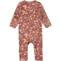 Fahari er en rød blomstret babydragt. Dragten har lange ben og ærmer, samt trykknapper ved hals og ben gør det let at få dragten af og på.