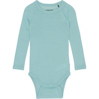 Blå babybody fremstillet i 100% Merino uld. Denne babybody har lange ærmer og trykknapper i kraven og mellem benene, som gør det nemt at få bodyen af og på. Match evt. denne body med bukserne, Sting, i samme print.