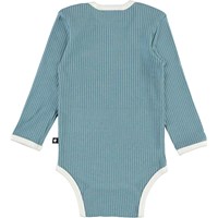 Faros er en lyseblå baby body i rib kvalitet med lyse kantbånd. Faros har trykknap i kraven og mellem benene, som gør det nemt at få bodyen af og på. Denne vare er fremstillet af økologisk bomuld.