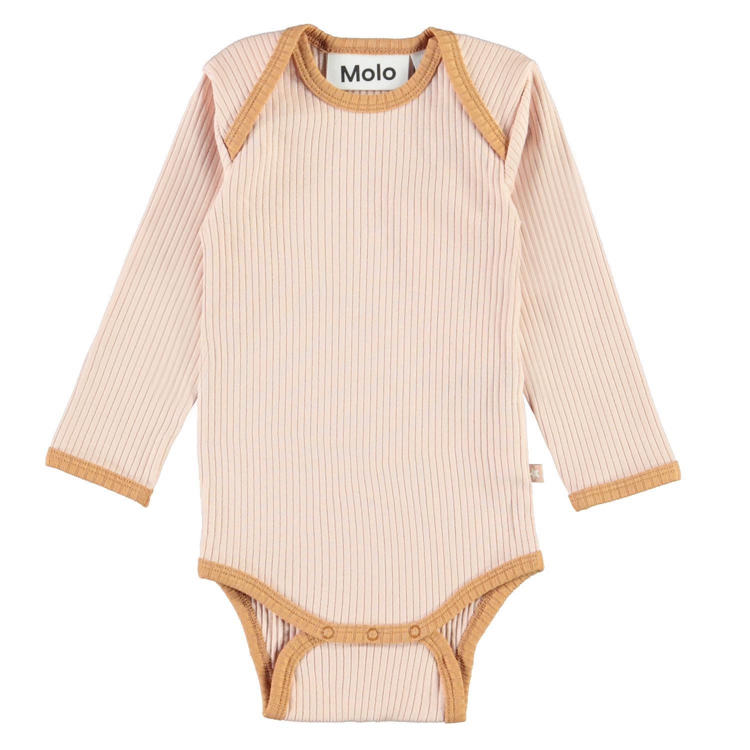 Faros er en lyserød baby body i rib kvalitet med brune kantbånd. Faros har trykknap i kraven og mellem benene, som gør det nemt at få bodyen af og på. Denne vare er fremstillet af økologisk bomuld.