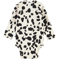 Faros er en hvid baby body med dalmatinerprint. Faros har trykknap mellem benene, som gør det nemt at få bodyen af og på.