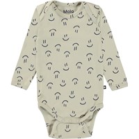 Faros er en grå babybody med print af små smiley'er. Kombiner med matchende bukser. Faros har trykknap mellem benene, som gør det nemt at få bodyen af og på.