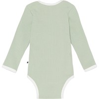 Faros er en mint grøn, unisex babybody i rib kvalitet. Faros har trykknap i kraven og mellem benene, som gør det nemt at få bodyen af og på.