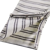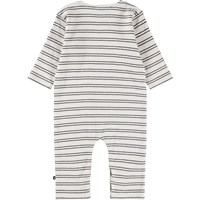 Heldragt i økologisk bomuld til de mindste med brune striber og brunt broderet smilende ansigt på brystet. Dragten har lange ærmer og ben samt knaplukning ved skulderen og mellem benene, hvilket gør den nem at få af og på.