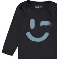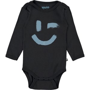 Foss er en langærmet baby body i sort. Trykknapper ved hals og mellem ben, gør det let at få bodyen af og på.