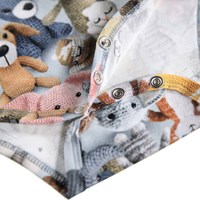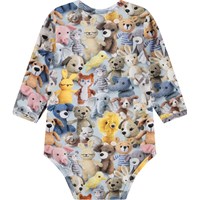 Langærmet body i økologisk bomuld til de mindste med print af hæklede bamser. Bodyen har kantbånd samt knaplukning på skuldrene og mellem benene for nem af- og påklædning.