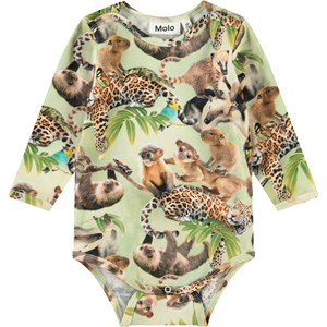 Langærmet body i økologisk bomuld til de mindste. Bodyen har kantbånd samt knaplukning på skuldrene og mellem benene for nem af- og påklædning. Denne body har print af jungledyr.