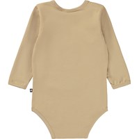 Beige babybody med front print. På printet ses en lille vaskebjørneunge, der prøver at kravle op på en gren. Måske vil han op til sin ven, sølvsmeden. Denne body er fremstillet i 100% bomuld, har lange ærmer, samt trykknapper i kraven og mellem benene, som gør det nemt at få bodyen af og på. Match evt. denne body med bukserne, Sabb, i printet "Among Friends".
