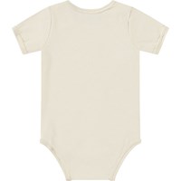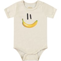 Kortærmet body i økologisk bomuld til de mindste. Bodyen har kantbånd samt knaplukning på skulderen og mellem benene for nem af- og påklædning. Denne body er beige med print af et smilende ansigt med en bananmund.